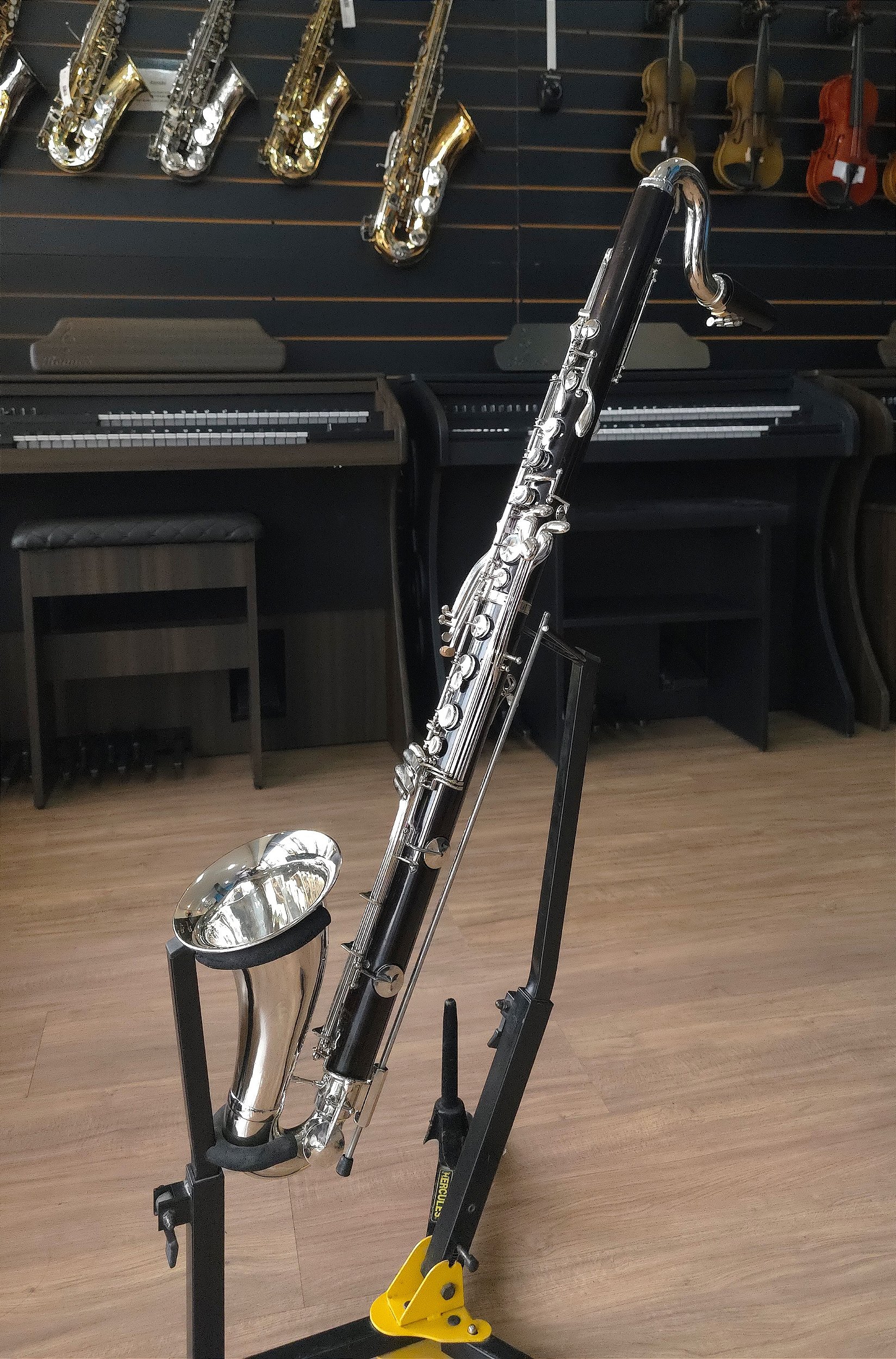 Clarone Baixo (Clarinete Baixo) da marca Evette Schaeffer, uma marca da Buffet Crampon que é uma marca super conhecida e com reputação mundial.